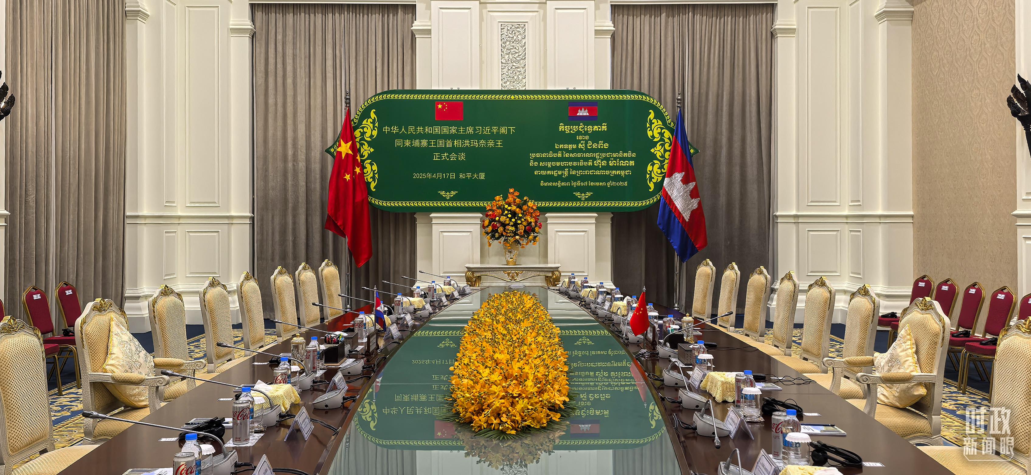 金邊和平大廈,習(xí)主席同洪森、洪瑪奈的會見會談在這里舉行。(總臺央視記者范一鳴拍攝)