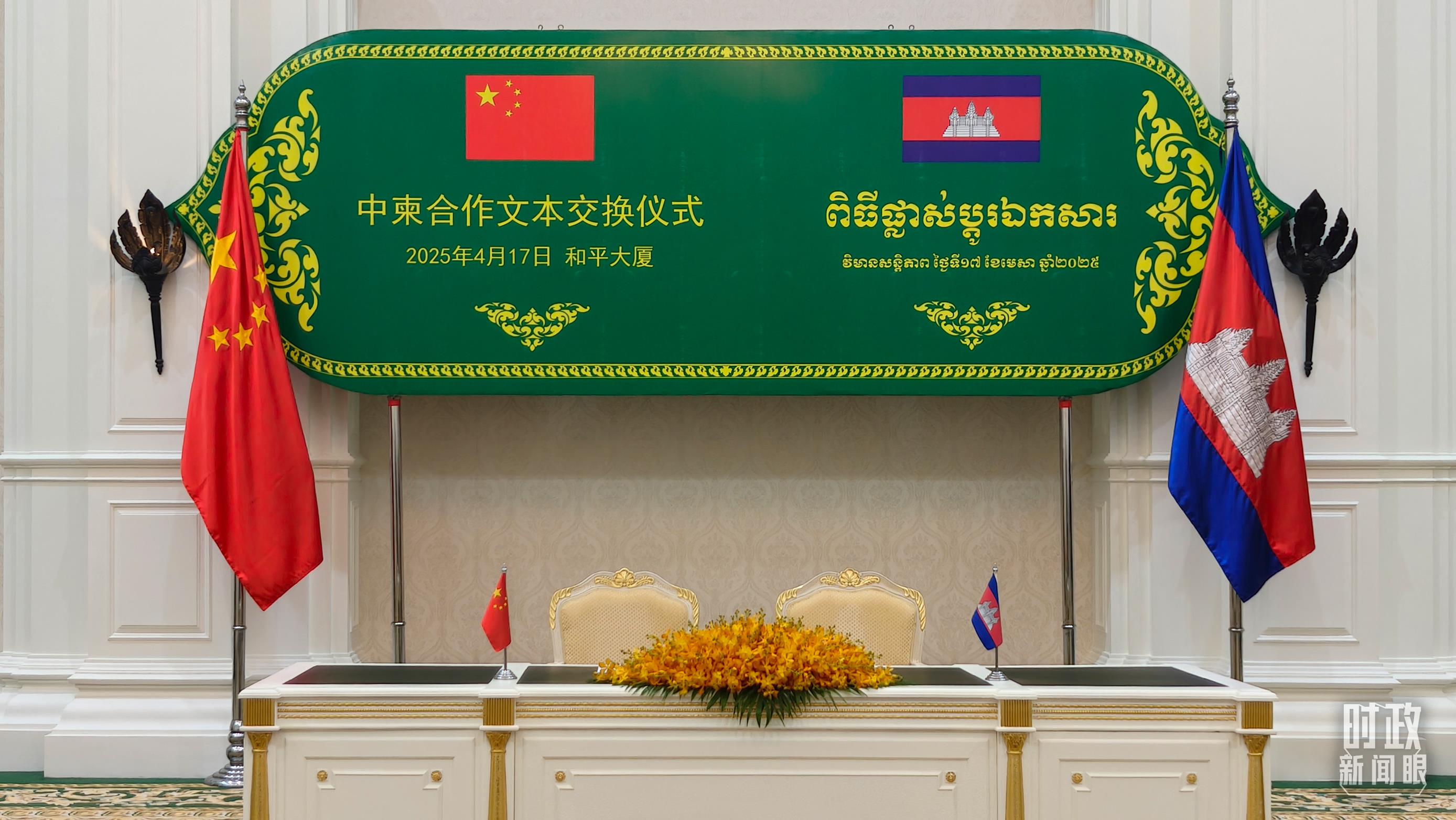 中柬合作文本交換儀式現(xiàn)場。(總臺央視記者楊立峰拍攝)