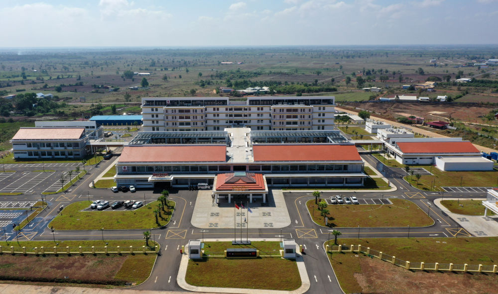 2022年2月17日在柬埔寨特本克蒙省新區(qū)拍攝的中國援柬埔寨特本克蒙省醫(yī)院。