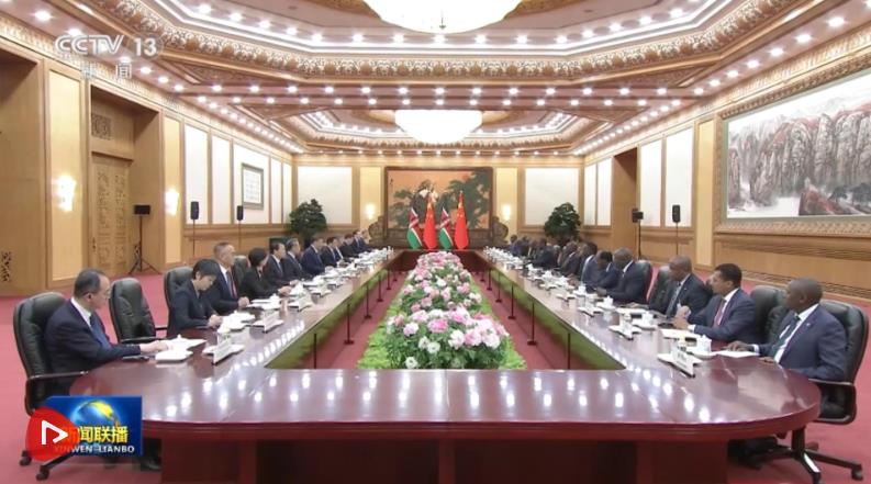 4月24日上午,國家主席習(xí)近平在北京人民大會(huì)堂同來華進(jìn)行國事訪問的肯尼亞總統(tǒng)魯托舉行會(huì)談。兩國元首一致同意將雙邊關(guān)系定位提升至新時(shí)代中肯命運(yùn)共同體。