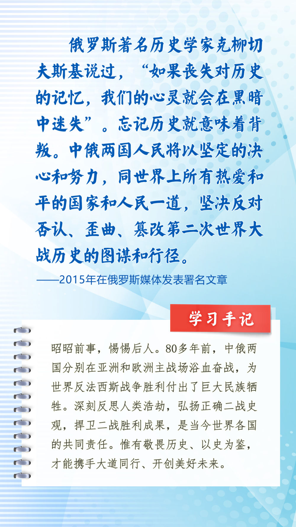 我們一起來學(xué)習(xí)品讀這些飽含哲思的論述,從中感悟新時代中俄關(guān)系在復(fù)雜的外部環(huán)境下堅毅前行之道,感悟習(xí)近平主席作為大黨大國領(lǐng)袖、世界級領(lǐng)袖的時代擔(dān)當(dāng)與天下情懷。