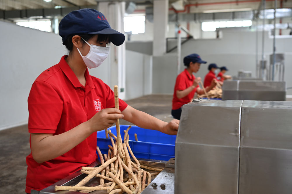 2024年7月23日,工人在甘肅定西隴西縣文峰鎮(zhèn)一家藥材企業(yè)加工中藥材切片。隴西中藥材種植歷史悠久,盛產(chǎn)300余種中藥材,是全國“道地藥材”的重要產(chǎn)區(qū)之一。近年來,當(dāng)?shù)赝ㄟ^推行產(chǎn)地種植標(biāo)準(zhǔn)化、藥材加工精深化、原藥倉儲規(guī)?;⑺幉慕灰资袌龌?、質(zhì)量監(jiān)測常態(tài)化、產(chǎn)業(yè)發(fā)展品牌化等改革創(chuàng)新舉措,推動中醫(yī)藥產(chǎn)業(yè)高質(zhì)量發(fā)展。