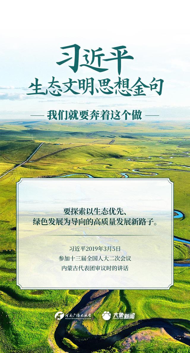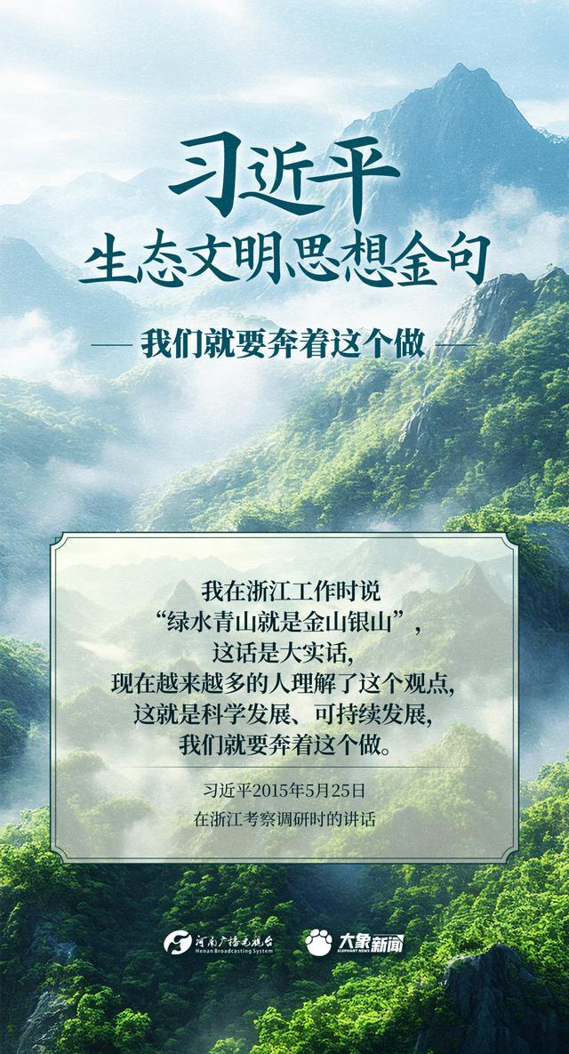 黨的十八大以來,習(xí)近平總書記把生態(tài)文明建設(shè)擺在治國理政突出位置,大力推動生態(tài)文明理論創(chuàng)新、實踐創(chuàng)新、制度創(chuàng)新,創(chuàng)造性提出一系列新理念新思想新戰(zhàn)略,形成了習(xí)近平生態(tài)文明思想,對生態(tài)文明建設(shè)的時代之問、世界之問、人民之問作出的科學(xué)解答。大象新聞推出《習(xí)近平生態(tài)文明思想金句》系列策劃,今天推出《我們就要奔著這個做》。