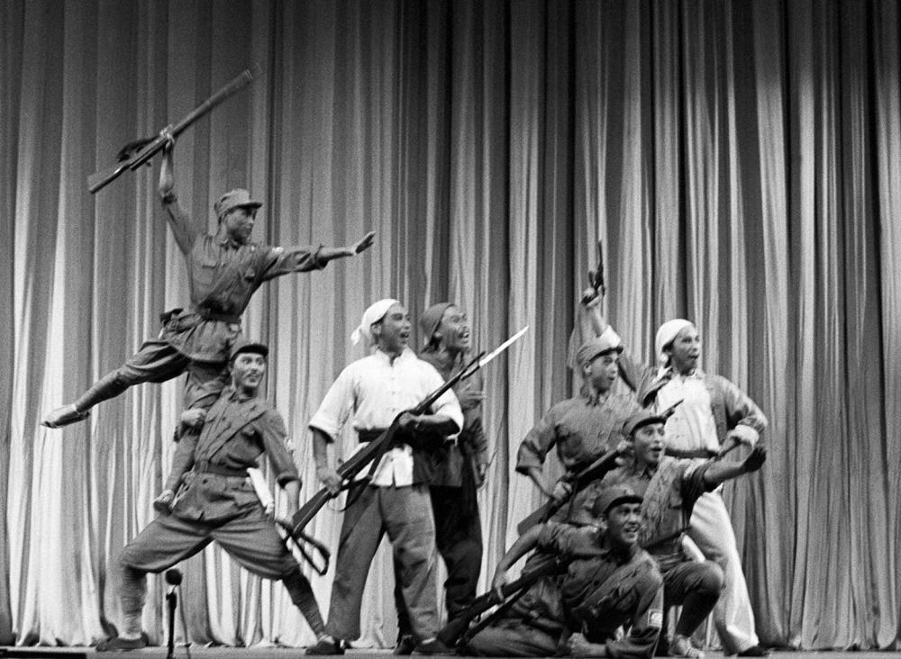 1965年,在北京舉行的紀(jì)念偉大抗日戰(zhàn)爭勝利20周年演出音樂會上,中國歌劇舞劇院演員表演《牛永貴負(fù)傷》,反映抗日戰(zhàn)爭中血肉相連的軍民關(guān)系。