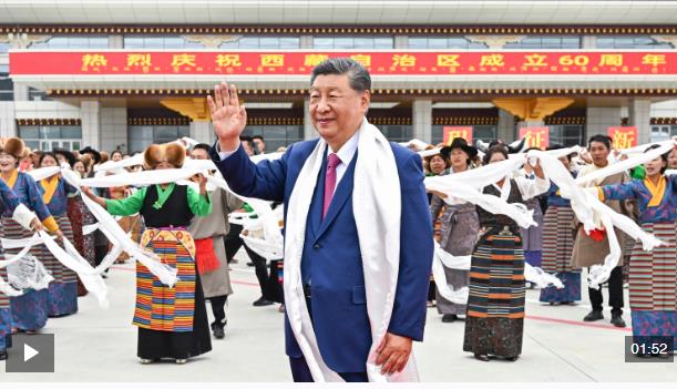 中共中央總書記、國家主席、中央軍委主席習近平率中央代表團20日中午乘專機抵達拉薩,出席西藏自治區(qū)成立60周年慶?;顒印A暯降仍跈C場和拉薩市區(qū)受到西藏各族群眾的熱烈歡迎。中共中央政治局常委、全國政協(xié)主席、中央代表團團長王滬寧,中共中央政治局常委、中央辦公廳主任蔡奇等同機抵達。