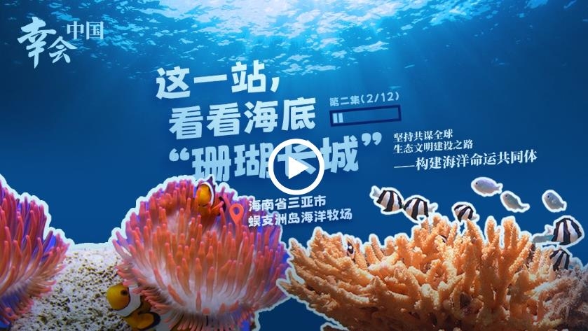 這一站,我們來到了海南三亞,一同潛入這片生命蓬勃的藍色世界。在蜈支洲島,中國首個熱帶海洋牧場,海洋守護者們花了數(shù)十年時間培育了30萬株珊瑚,構(gòu)筑起了一座真正的海底“長城”。海底的珊瑚如森林般繁茂,消失的魚群也因此重回海底家園,海洋生態(tài)仿佛重獲新生。在習(xí)近平生態(tài)文明思想的指引下,這里的生態(tài)修復(fù)不僅彰顯了保護的重要性,更是共謀全球生態(tài)文明之路的生動實踐。中國堅持守護海洋生態(tài),用行動書寫“海洋命運共同體”的信念。