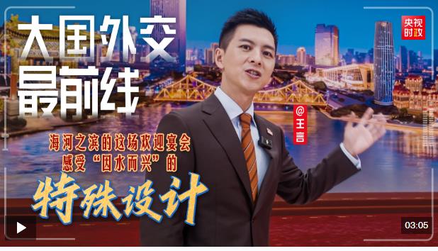 天津依河傍海,自古便是連接南北、溝通中西的樞紐,而走過(guò)24載的上合組織,成立于黃浦江畔、聚首在海河之濱。在歡迎宴會(huì)現(xiàn)場(chǎng),“大國(guó)外交最前線”也注意到了一個(gè)“因水而興”的特殊設(shè)計(jì),一起去看一看吧!