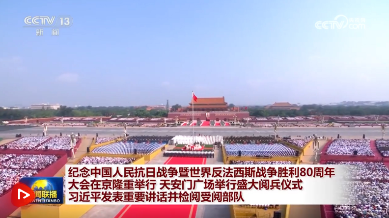 銘記偉大歷史勝利,凝聚正義和平力量。9月3日上午,紀(jì)念中國人民抗日戰(zhàn)爭(zhēng)暨世界反法西斯戰(zhàn)爭(zhēng)勝利80周年大會(huì)在北京天安門廣場(chǎng)隆重舉行,以盛大閱兵儀式,同世界人民一道紀(jì)念這個(gè)偉大的日子,共同開創(chuàng)更加光明的未來。中共中央總書記、國家主席、中央軍委主席習(xí)近平發(fā)表重要講話并檢閱受閱部隊(duì)。