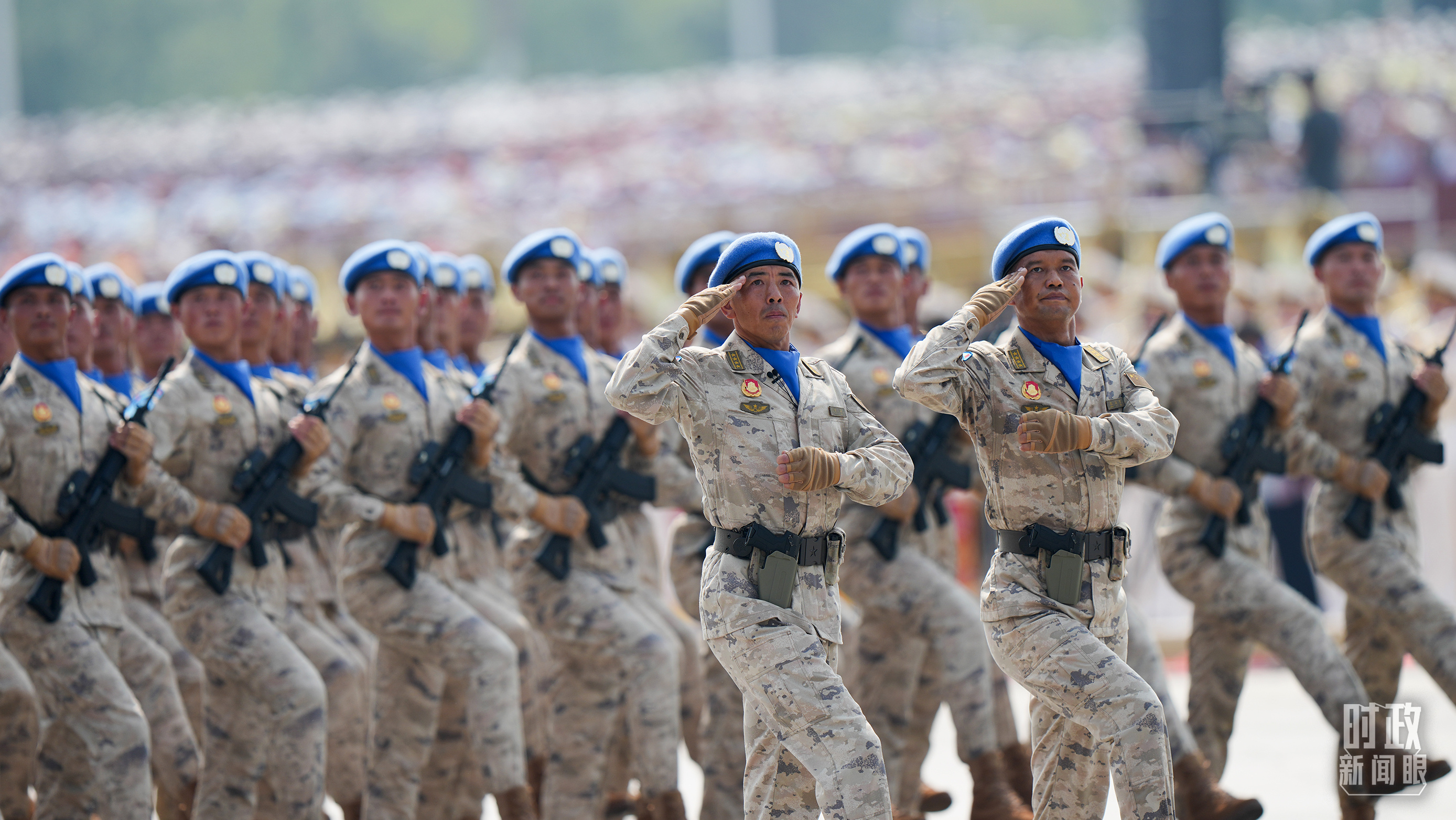 閱兵式上,維和部隊(duì)方隊(duì)闊步走來(lái)。今年是中國(guó)軍隊(duì)參加聯(lián)合國(guó)維和行動(dòng)35周年,累計(jì)派遣超過(guò)5萬(wàn)名維和官兵,中國(guó)是聯(lián)合國(guó)安理會(huì)常任理事國(guó)中派出維和人員最多的國(guó)家?!爸袊?guó)藍(lán)盔”不懼艱險(xiǎn)、不辱使命,以熱血鍛鑄和平盾牌,用行動(dòng)譜寫(xiě)大國(guó)擔(dān)當(dāng),已經(jīng)成為守護(hù)世界和平安寧的關(guān)鍵穩(wěn)定力量。
