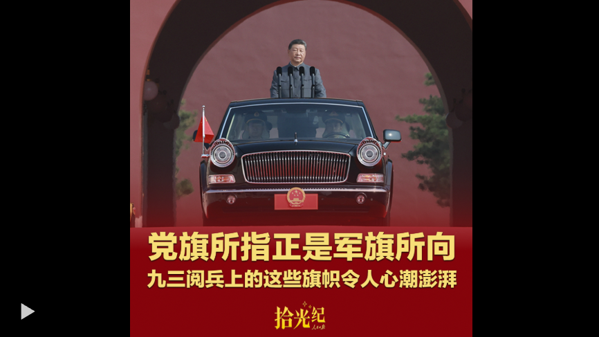習(xí)近平向黨旗、國(guó)旗、軍旗行注目禮、劉老莊連沿用著當(dāng)年的戰(zhàn)旗樣式……九三閱兵上的這些旗幟令人心潮澎湃。