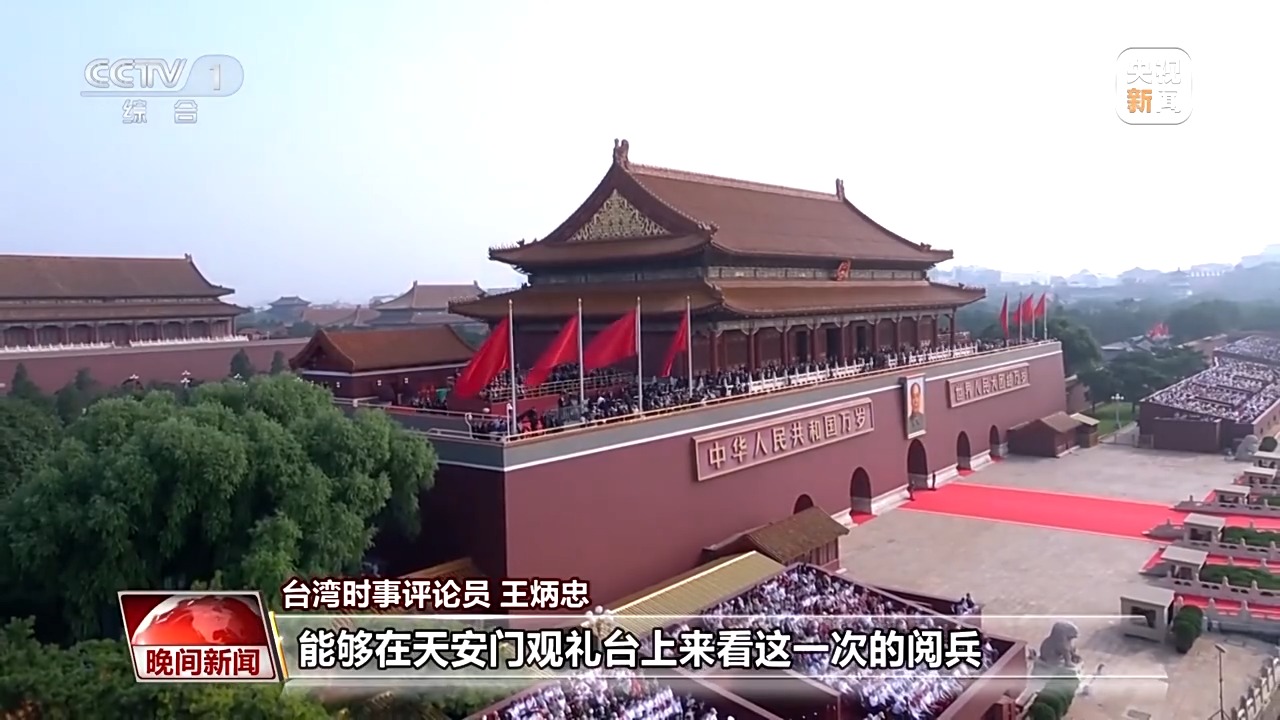 臺灣時事評論員 王炳忠:這次非常有幸能夠在天安門觀禮臺上看閱兵。和平必須靠實力才能夠確保,在過去,曾經(jīng)看到那么多先輩犧牲所換得的對日抗戰(zhàn)的勝利以及臺灣光復(fù),作為每一個中華兒女都不能夠遺忘。