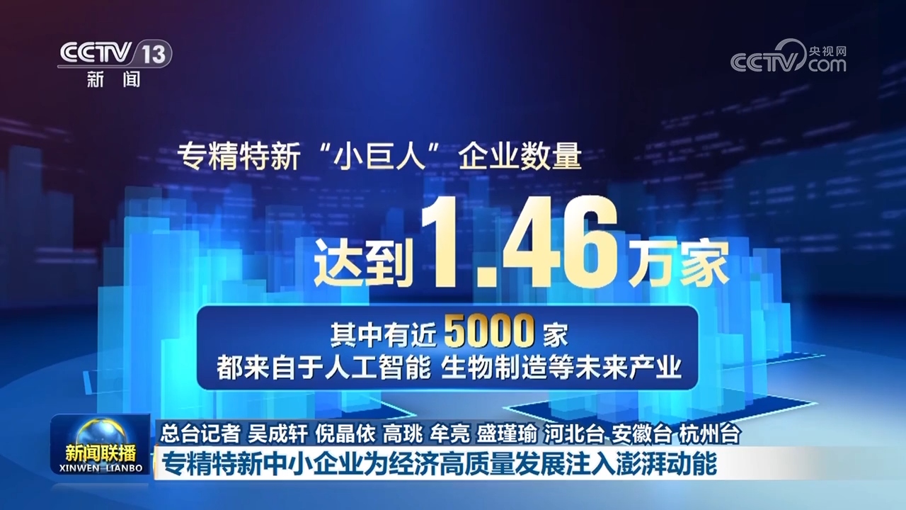 當(dāng)前,我國(guó)已累計(jì)培育專精特新中小企業(yè)超過14萬(wàn)家,專精特新“小巨人”企業(yè)數(shù)量達(dá)到1.46萬(wàn)家,其中有近5000家都來(lái)自于人工智能、生物制造等未來(lái)產(chǎn)業(yè)。1—7月,規(guī)模以上工業(yè)專精特新“小巨人”企業(yè)增加值同比增長(zhǎng)8.7%,增速高于全部規(guī)模以上工業(yè)2.4個(gè)百分點(diǎn)。
