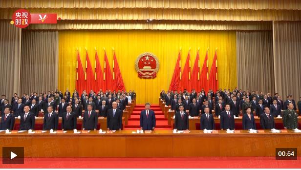 25日上午,新疆維吾爾自治區(qū)成立70周年慶祝大會(huì)在新疆人民會(huì)堂隆重舉行。現(xiàn)場(chǎng)全體起立,高唱國(guó)歌。