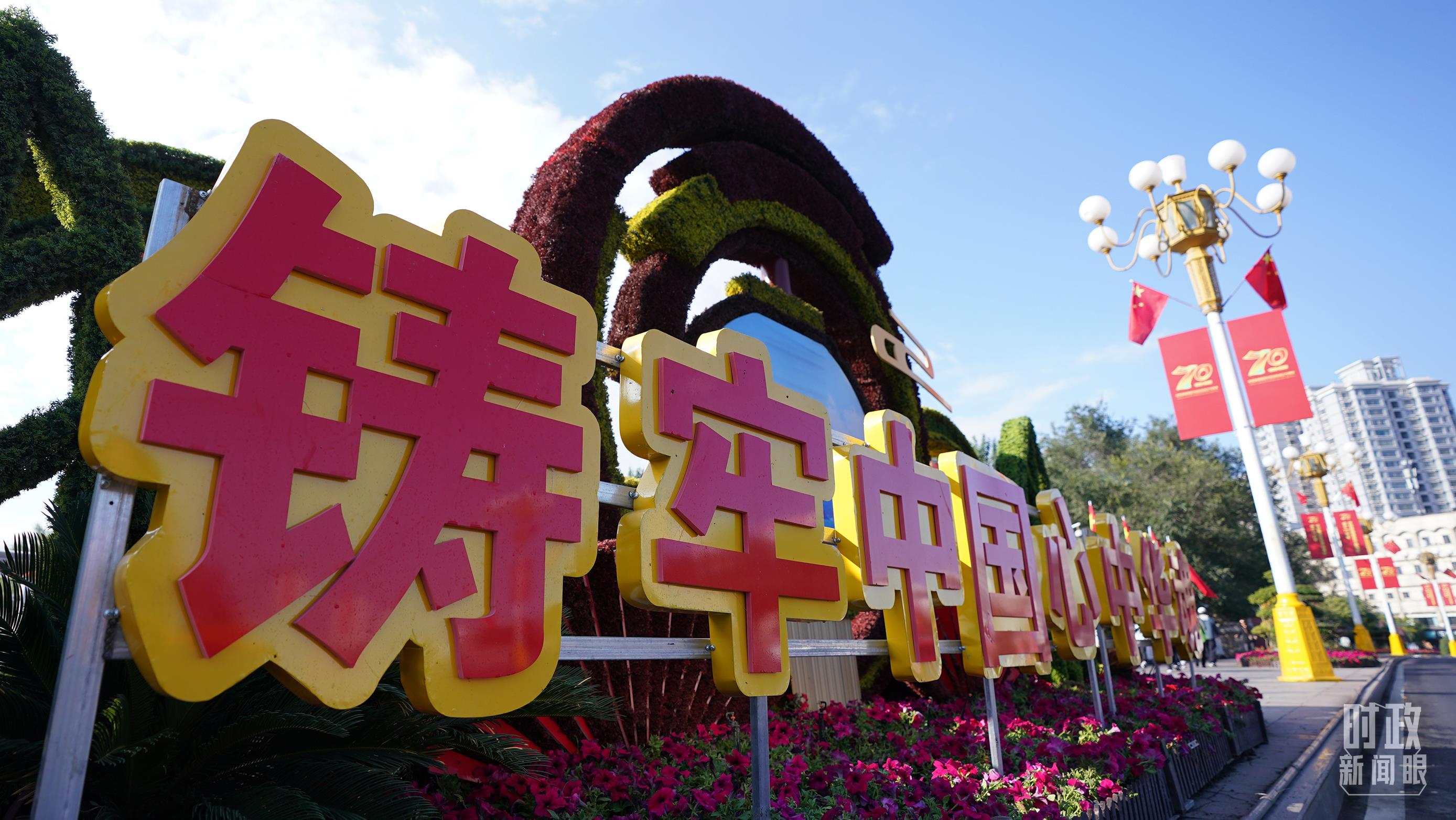 烏魯木齊街頭的花壇。(總臺(tái)記者李晉拍攝)