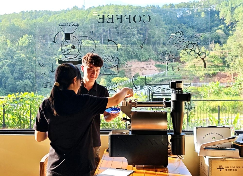 2025年9月20日,云南省普洱市南屏鎮(zhèn)南島河村“美麗星村·有風咖谷”咖啡體驗中心的工作人員在烘焙咖啡豆。因普洱茶享譽海內外的普洱市依托豐富的咖啡資源和獨特的咖啡文化,積極推進咖啡與旅游的深度融合,打造了咖啡莊園、咖啡主題街區(qū)和咖啡文化集市等多元體驗場景,受到游客青睞。近年來,云南憑借得天獨厚的咖啡種植優(yōu)勢和文旅資源,通過科技賦能、精品化轉型、業(yè)態(tài)創(chuàng)新、集群發(fā)展和文化注入,逐步實現(xiàn)“咖啡+文旅”產業(yè)鏈各環(huán)節(jié)價值提升。