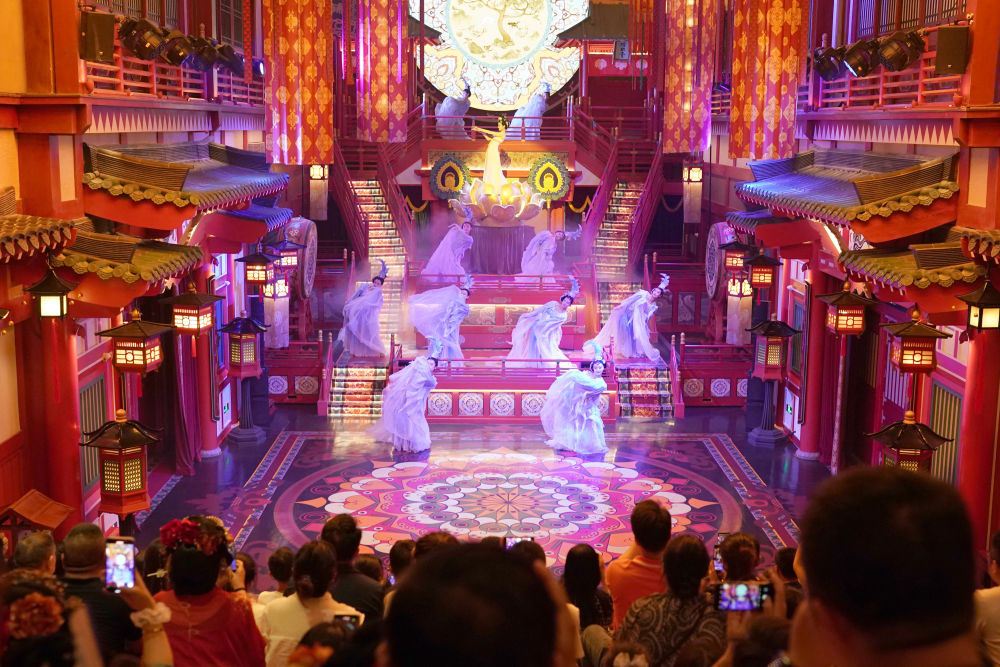 2024年5月19日,游客在西安長安十二時辰景區(qū)觀看表演《霓裳羽衣舞》。“長安十二時辰”主題街區(qū)將唐朝文化與現(xiàn)代旅游相結合,讓游客仿佛置身于千年前的長安城。近年來,西安積極推進產業(yè)升級和文旅融合,以中華優(yōu)秀傳統(tǒng)文化創(chuàng)新創(chuàng)造活力助推經濟社會高質量發(fā)展,如大唐不夜城一樣火爆“出圈”的文旅項目層出不窮。
