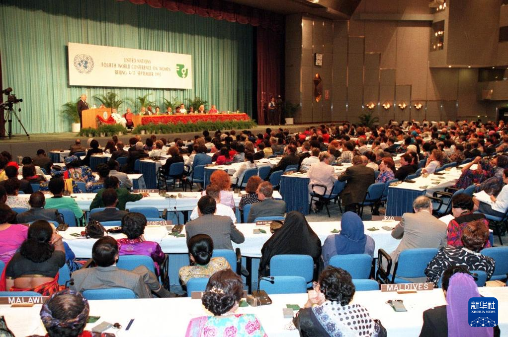 1995年9月4日,聯(lián)合國第四次世界婦女大會在中國北京召開。會議通過了具有里程碑意義的《北京宣言》和《行動綱領》。新華社發(fā)