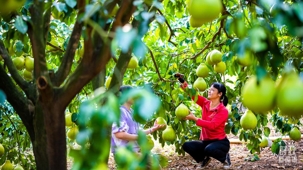 △南福金柚種植基地,柚林迎來豐收。(總臺(tái)記者吳媚苗、總臺(tái)央視記者鄂介甫拍攝)