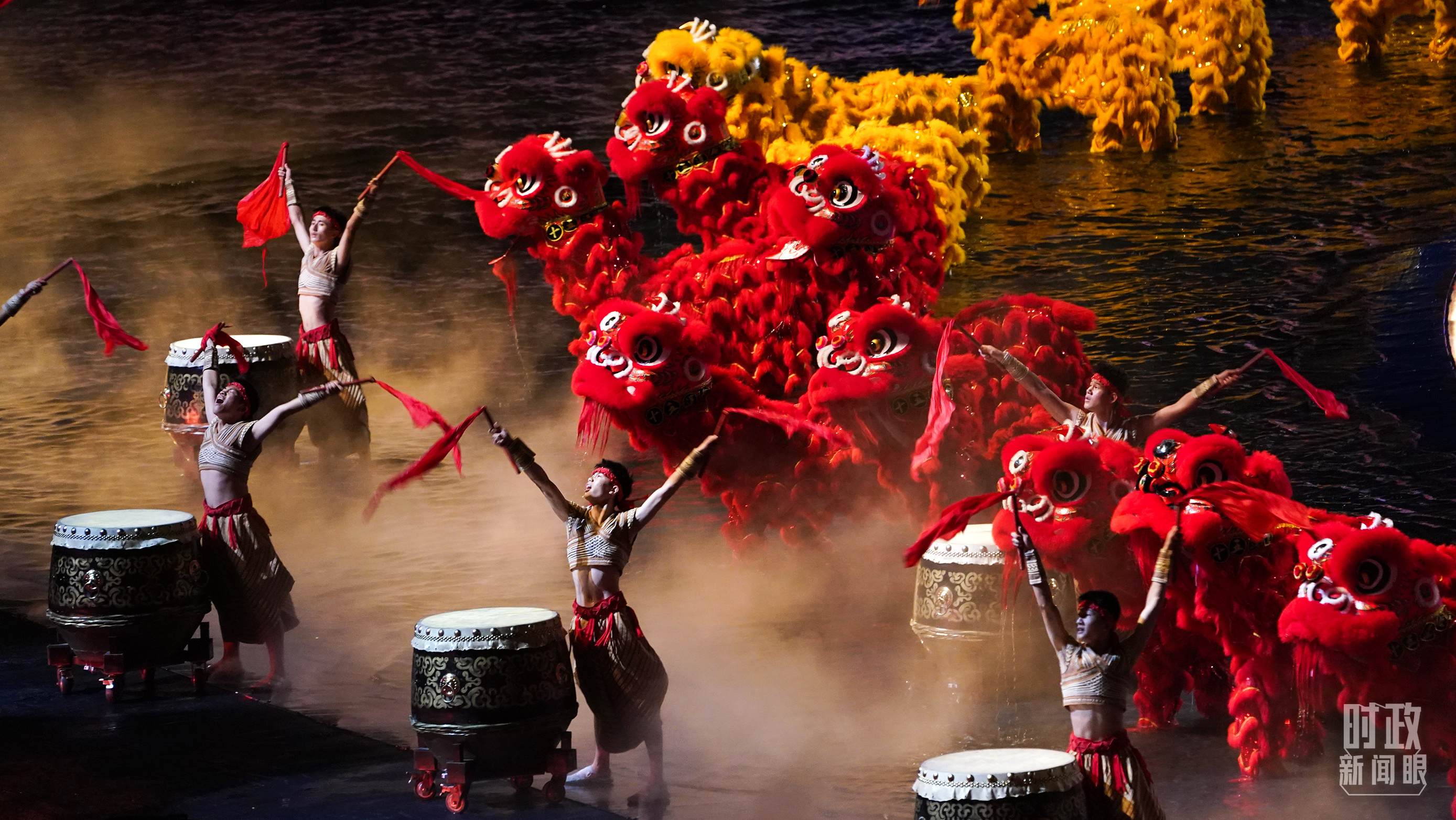 粵港澳大灣區(qū)作為全國(guó)科技重鎮(zhèn),傳統(tǒng)嶺南文化與前沿科技深度融合成為本屆全運(yùn)會(huì)開幕式的一大亮點(diǎn)。醒獅表演與人工智能技術(shù)相互交融,英歌鑼鼓搭配全息投影,龍舟競(jìng)渡場(chǎng)景通過AR技術(shù)“劃”入觀眾席,一場(chǎng)“古今對(duì)話”的沉浸式藝術(shù)盛宴“燃動(dòng)”全場(chǎng)?;泟 ⒃伌?、麒麟、廣繡、嵌瓷等璀璨的嶺南文化符號(hào)巧妙融入,賦予開幕式獨(dú)特的嶺南神韻。