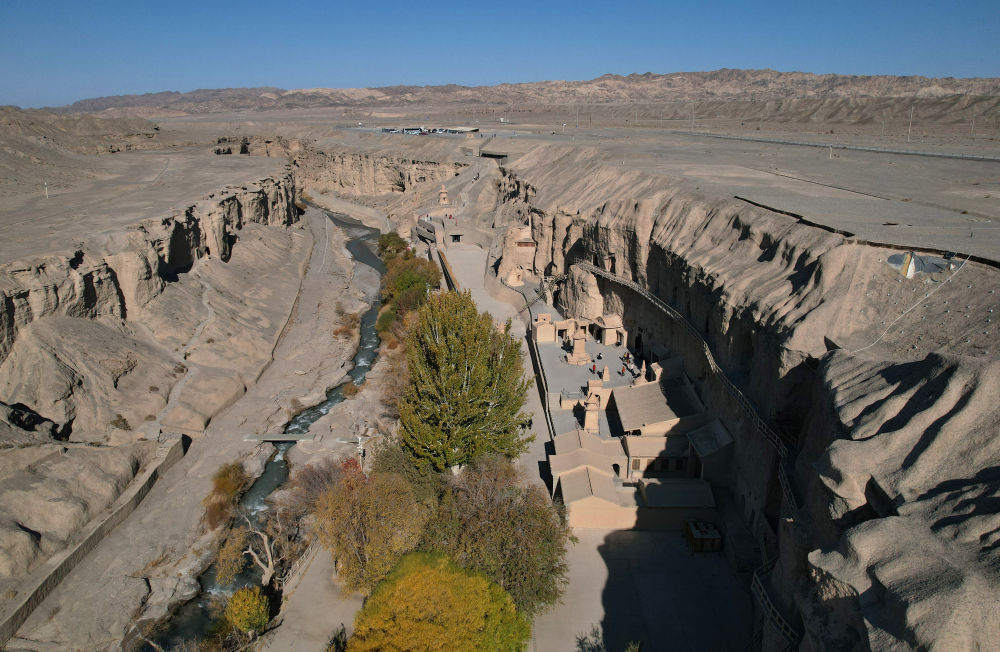 位于甘肅瓜州縣的榆林窟(2025年10月31日攝,無人機照片)。