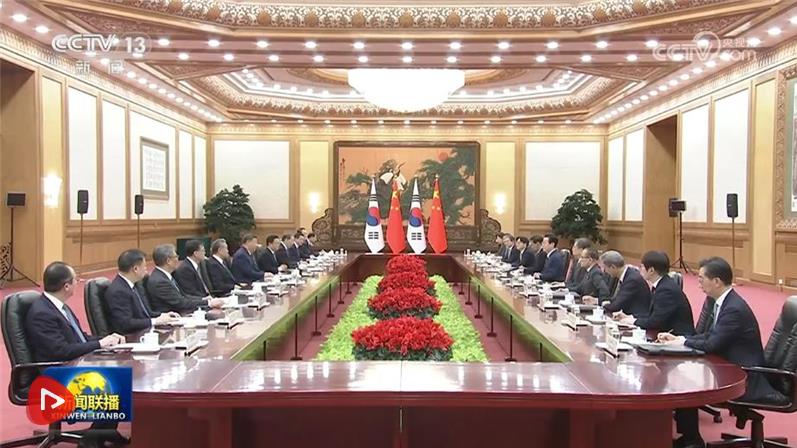 習(xí)近平指出,當(dāng)前世界百年變局加速演進(jìn),國際形勢更加變亂交織。中韓在維護(hù)地區(qū)和平、促進(jìn)全球發(fā)展方面肩負(fù)重要責(zé)任,有廣泛利益交集,應(yīng)當(dāng)堅(jiān)定站在歷史正確一邊,作出正確戰(zhàn)略選擇。80多年前,中韓兩國付出巨大民族犧牲,贏得抗擊日本軍國主義的勝利。今天更應(yīng)攜手捍衛(wèi)二戰(zhàn)勝利成果,守護(hù)東北亞和平穩(wěn)定。作為經(jīng)濟(jì)全球化的受益者,中韓要共同反對保護(hù)主義,踐行真正的多邊主義,為推進(jìn)平等有序的世界多極化、普惠包容的經(jīng)濟(jì)全球化作出貢獻(xiàn)。