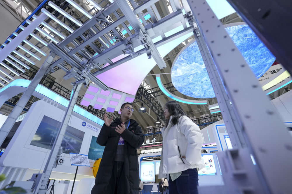 2026年1月6日,在2026哈爾濱國際冰雪經(jīng)濟博覽會展會現(xiàn)場,參會嘉賓(左)為參觀者介紹智能大型冰雕自動化搭建機器人。本屆博覽會旨在通過成果展示、產(chǎn)業(yè)交流與投資合作,展現(xiàn)“冰雪+經(jīng)濟”“冰雪+科技”等融合發(fā)展成果,為全球投資者提供市場機遇。