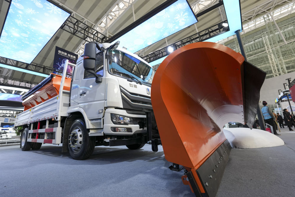 這是2026年1月6日在2026哈爾濱國際冰雪經(jīng)濟博覽會展會拍攝的大型清雪設(shè)備展品。