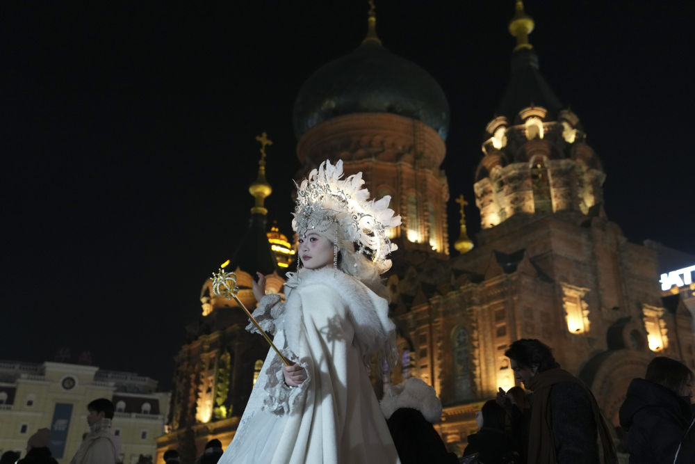 2025年12月7日,第六屆哈爾濱采冰節(jié)在松花江畔開幕,精彩的采冰儀式和民俗體驗互動吸引眾多市民和游客參與其中。這是采冰節(jié)現(xiàn)場的民俗表演。