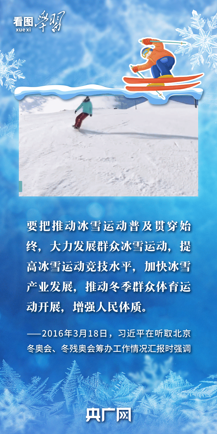 “人生幸??鞓?lè),強(qiáng)身健體十分重要?!币恢币詠?lái),習(xí)近平總書記高度重視我國(guó)冰雪運(yùn)動(dòng)發(fā)展,強(qiáng)調(diào)要大力發(fā)展群眾冰雪運(yùn)動(dòng),提高冰雪運(yùn)動(dòng)競(jìng)技水平,加快冰雪產(chǎn)業(yè)發(fā)展,推動(dòng)冬季群眾體育運(yùn)動(dòng)開(kāi)展,增強(qiáng)人民體質(zhì)。