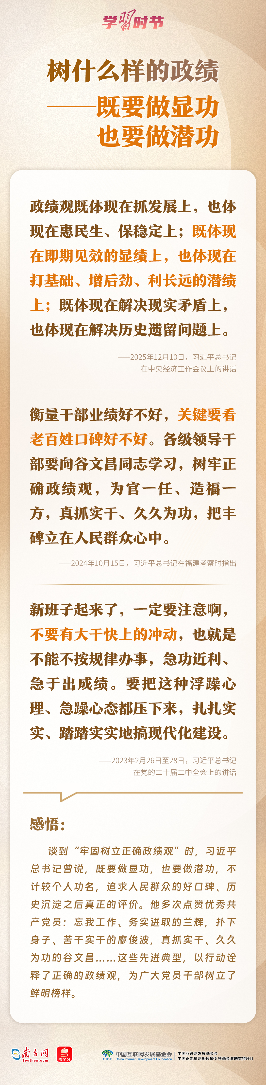 黨的十八大以來,習近平總書記對樹立和踐行正確政績觀作出一系列重要論述,深刻闡明了“政績?yōu)檎l而樹、樹什么樣的政績、靠什么樹政績”等重大問題,為廣大黨員干部提供了重要遵循。一起來學習感悟。