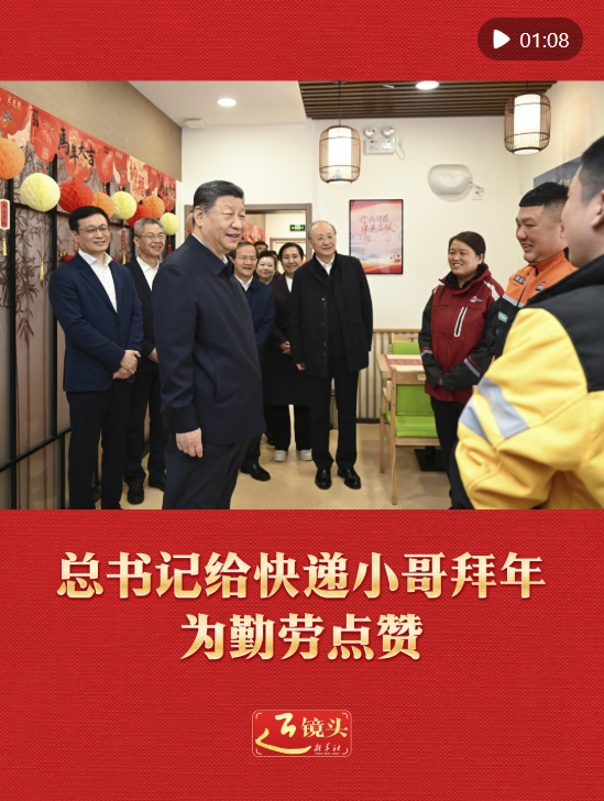 10日上午,習近平總書記在北京考察調研,走進西城區(qū)新街口街道父母食堂,見到在這里休息的快遞小哥,關切詢問他們的工作和生活,為他們付出的辛勞和作出的貢獻點贊,并給他們拜年。