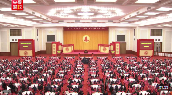 中共中央、國務院14日上午在人民大會堂舉行2026年春節(jié)團拜會。中共中央總書記、國家主席、中央軍委主席習近平發(fā)表講話。