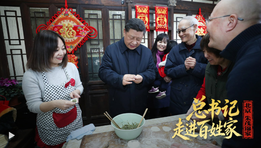 2019年春節(jié)前夕,習(xí)近平總書記走進北京市東城區(qū)草廠四條胡同。在居民朱茂錦家里,總書記與他們一家邊包水餃邊聊家常。總書記笑著說:“我家里也愛包茴香餡的。多年來因工作關(guān)系我沒包過餃子了,你們看,越包越好。我們的生活也是這樣,越過越好!”