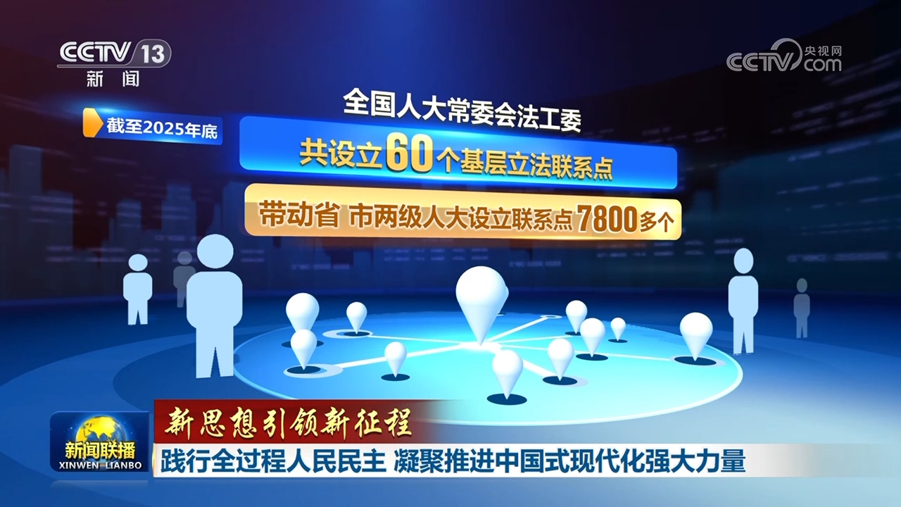 截至2025年底,全國人大常委會法工委共設(shè)立60個基層立法聯(lián)系點,帶動省、市兩級人大設(shè)立聯(lián)系點7800多個;2025年,1400余名政協(xié)委員反映社情民意信息1.2萬余篇……各類反映基層民情民意的直通快車,成為密切聯(lián)系群眾的橋梁紐帶。