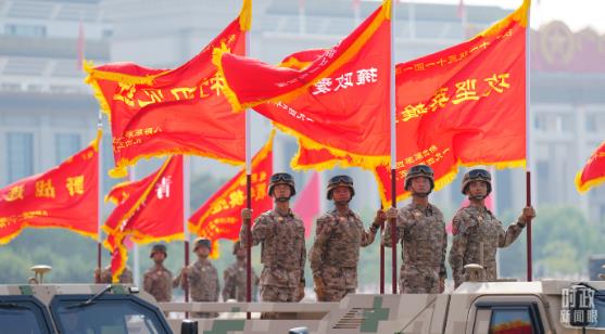 △九三閱兵中的戰(zhàn)旗方隊(duì)。(總臺(tái)記者李晉拍攝)