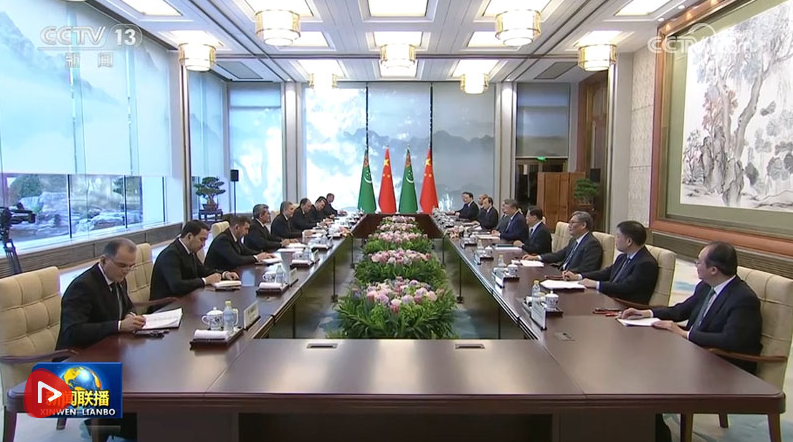 3月18日下午,國家主席習近平在北京釣魚臺國賓館會見來華進行友好訪問的土庫曼斯坦民族領袖、人民委員會主席別爾德穆哈梅多夫。