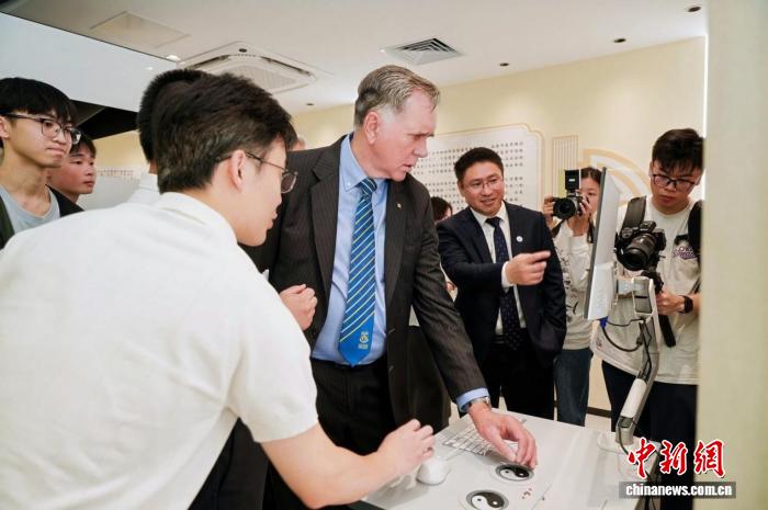 3月24日,巴里·馬歇爾教授一行參觀(guān)廣州中醫(yī)藥大學(xué)基礎(chǔ)醫(yī)學(xué)院。廣州中醫(yī)藥大學(xué)供圖