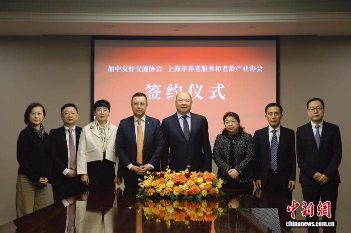 上海市養(yǎng)老服務和老齡產(chǎn)業(yè)協(xié)會與加中友好交流協(xié)會簽署戰(zhàn)略合作協(xié)議。(加中友好交流協(xié)會供圖)
