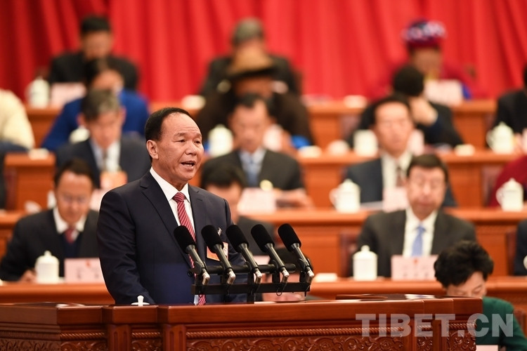 圖為齊扎拉主席作政府工作報(bào)告 攝影:何蓬磊
