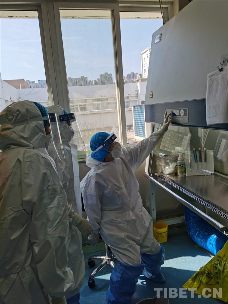 圖為武漢市金銀潭醫(yī)院的老師們向藏族學(xué)員仔細(xì)講解核酸檢測技術(shù)