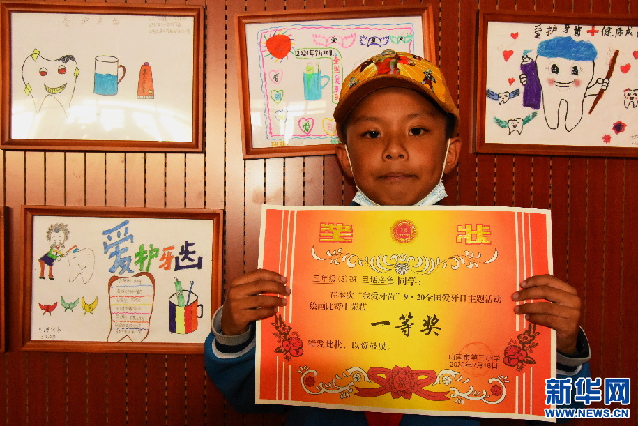 三年級學生旦增洛色所作的繪畫“愛護牙齒”得了一等獎,現(xiàn)場拿到獎狀的他很是興奮。“叔叔阿姨們給我們講了很多愛護牙齒的知識,還叮囑我們要養(yǎng)成刷牙的好習慣?!钡┰雎迳f,“我會把了解到的這方面知識,告訴身邊所有人,讓他們也都有健康的牙齒?!?/p>
