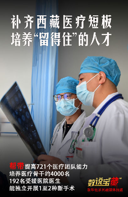 醫(yī)療人才“組團(tuán)式”援藏實(shí)施以來(lái),共幫帶721個(gè)醫(yī)療團(tuán)隊(duì)、2031名本地醫(yī)務(wù)人員、培養(yǎng)醫(yī)療骨干約4000名,已有192名受援醫(yī)院的醫(yī)生能獨(dú)立開展1種至2種新手術(shù),實(shí)現(xiàn)了400多種較大疾病不出藏,大多數(shù)“中病”不出市(地)就能得到治療。