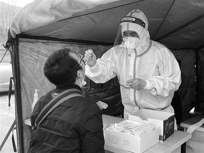 索朗旦增正在為市民進(jìn)行核酸取樣。