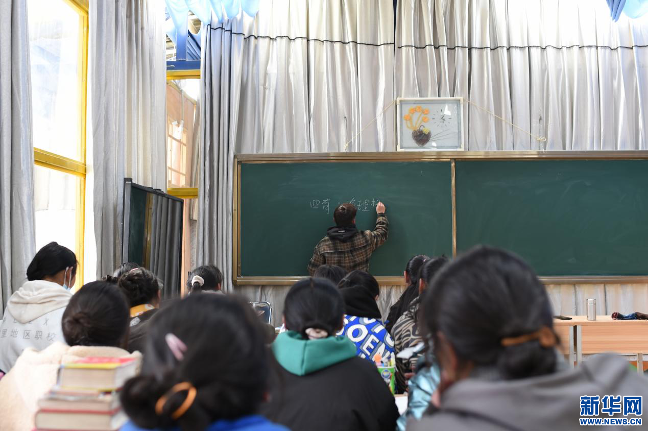 在西藏阿里岡底斯藏醫(yī)教學(xué)院,學(xué)生們在上課(4月20日攝)。新華網(wǎng) 旦增努布攝