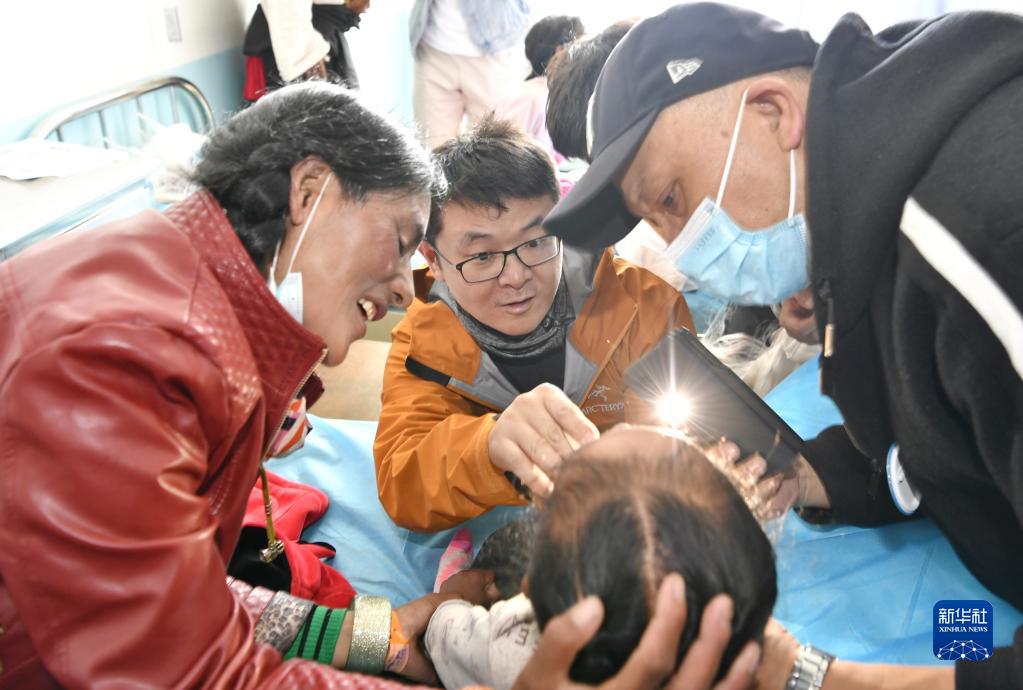 7月30日,中國(guó)醫(yī)學(xué)科學(xué)院整形外科醫(yī)院醫(yī)生王克明(中)在阿里地區(qū)人民醫(yī)院看望一名術(shù)后兒童。新華社記者 張汝鋒 攝