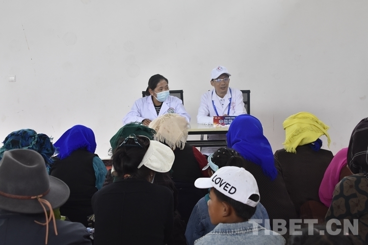 圖為7月8日,活動(dòng)現(xiàn)場(chǎng)開(kāi)展了骨關(guān)節(jié)炎防治健康知識(shí)講座,鄉(xiāng)政府還安排了一名翻譯 攝影:次旦拉姆