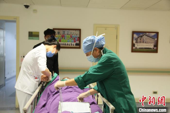 11月21日,藏族女孩澤巴永宗在北京接受脊柱側(cè)凸矯形手術(shù)前,醫(yī)務(wù)人員為其核對(duì)信息。中新網(wǎng)記者 朱賀 攝