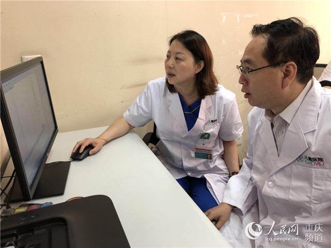 重慶醫(yī)科大學(xué)附屬兒童醫(yī)院心電生理診斷中心,專家實(shí)時(shí)分析央措的心電圖報(bào)告。