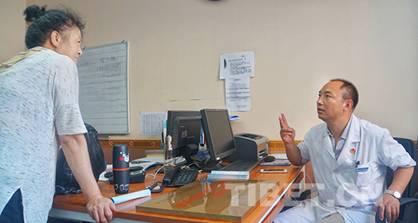 圖為王多吉正在同患者交流治療方案。攝影:楊悅笙