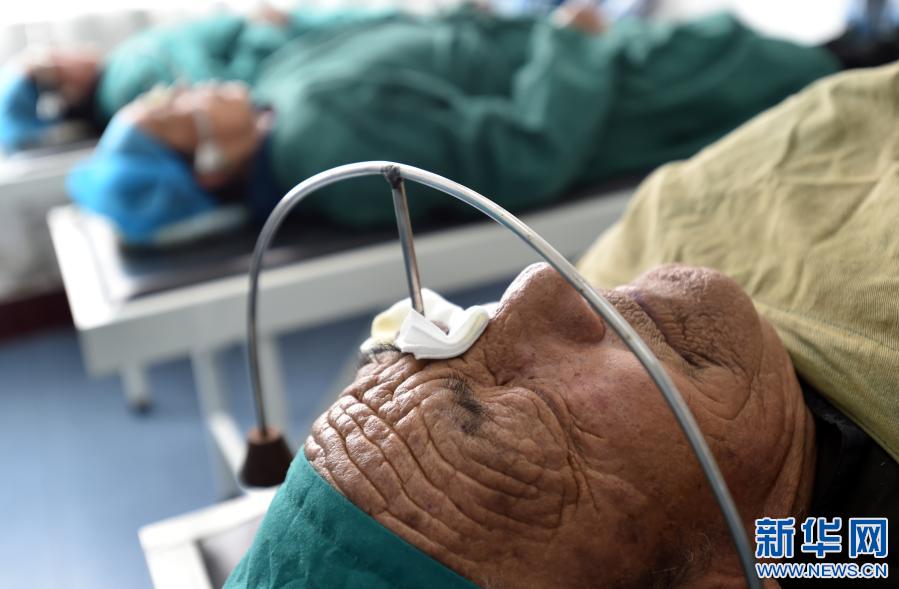 白內(nèi)障患者在拉薩光明眼科康復(fù)診療院等待手術(shù)(2019年10月25日攝)。新華社記者 覺果 攝